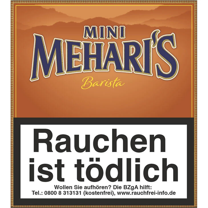 Mehari’s Mini Barista (ehemals Mehari’s Mini Mocca) Shortfiller Zigarillos von Royal Agio Cigars, ursprünglich aus der Karibik, aus edlen feinen Tabaken aus dominikanischem Tripa Olor-Tabak, mit einem Umblatt aus Java Tabak. Dieser edle Tabak wurde zusätzlich mit feinen Kaffee Aromen von Robusta- und Arabica Kaffebohnen veredelt und erhält dadurch ein unvergleichliches Aroma, was mit einem leichten Karamellgeschmack noch abgerundet wird. Ein rundum außergewöhnliches Raucherlebnis.